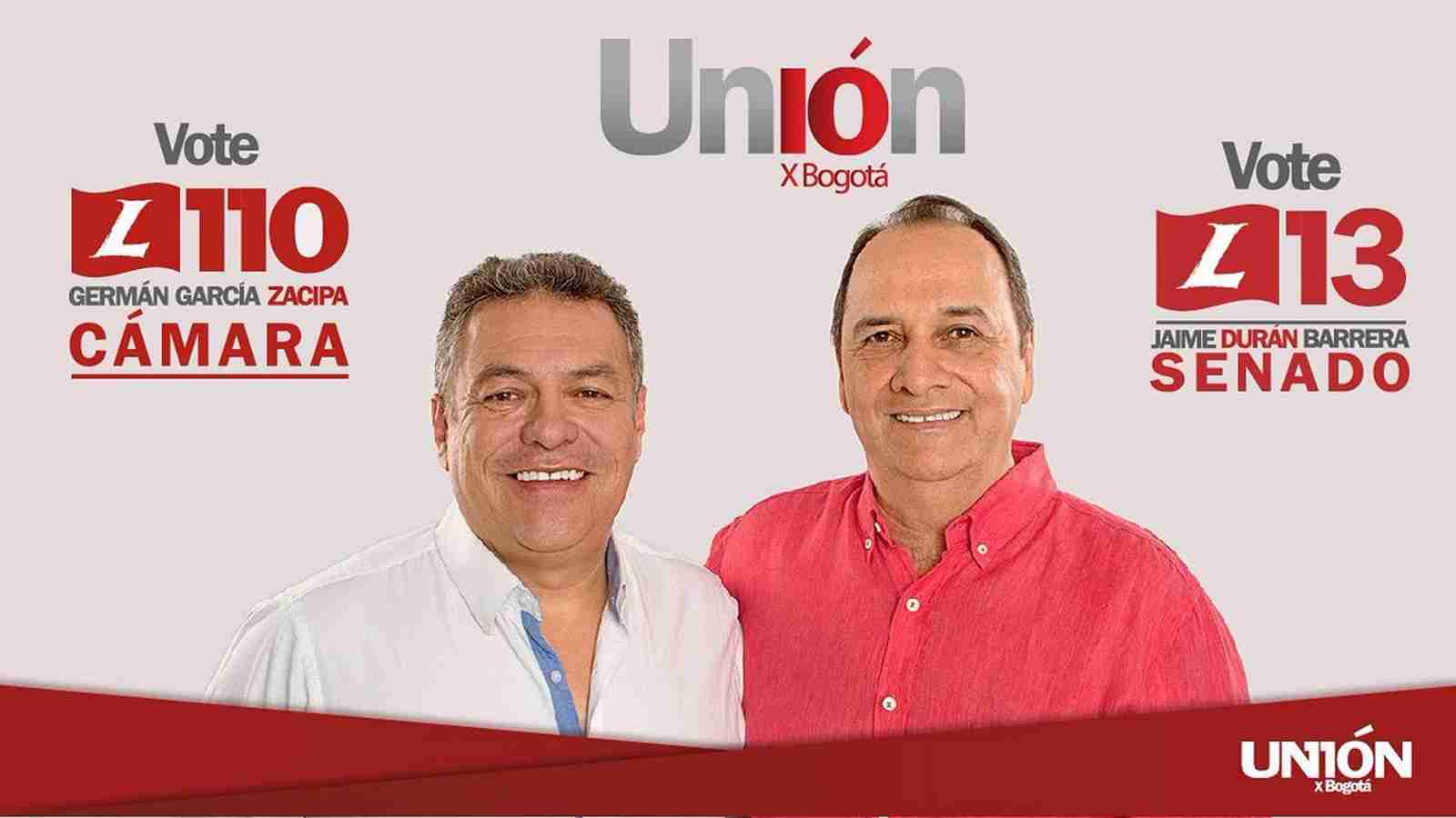 Se trata de la Alianza Liberal con Jaime Durán Barrera al Senado -L 13- en el tarjetón y Germán García Zacipa -L 110- a la Cámara de Representantes, quienes en el Congreso aspiran a consolidar los mejores proyectos y soluciones desde el ámbito legislativo, para hacer de Bogotá una urbe más desarrollada, más productiva y orientada a un mejor convivir de sus habitantes.
